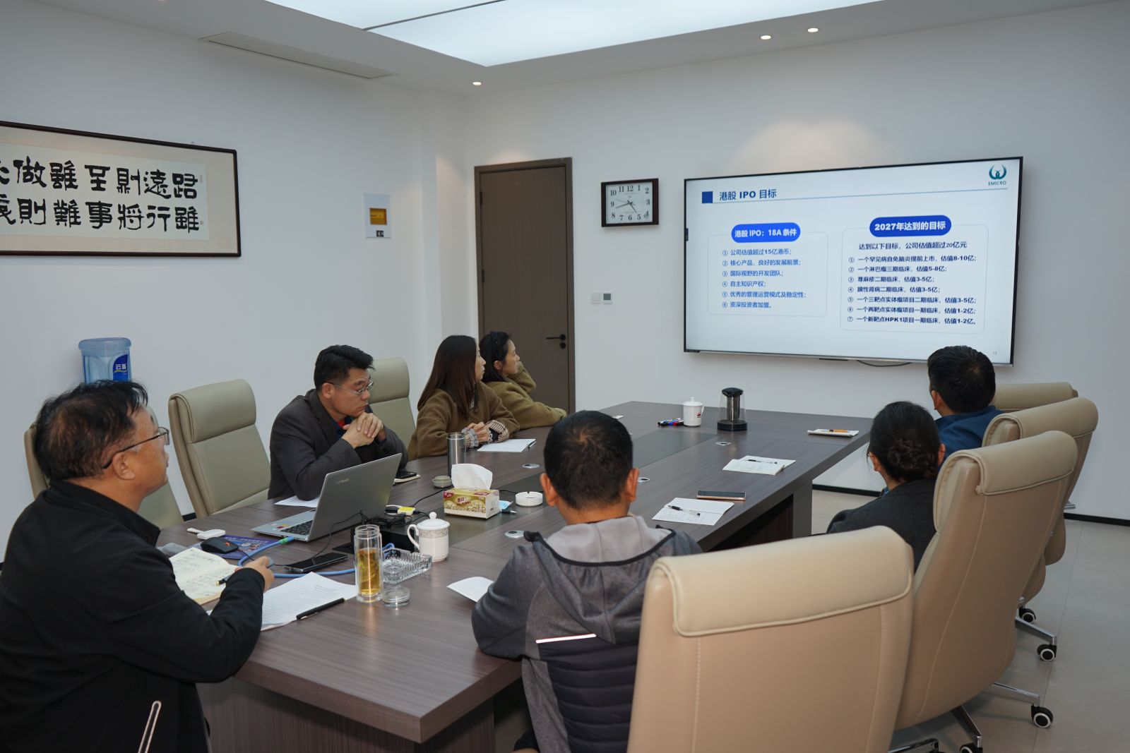 在会上,靳总通过电视大屏现场给大家讲解了知微医药板块的战略发展方向和未来愿景,极大地鼓舞了参会员工的士气。